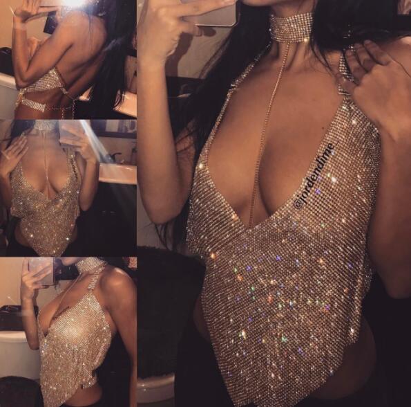hot sales sexy halter shiny top with diamond for girls wholesale